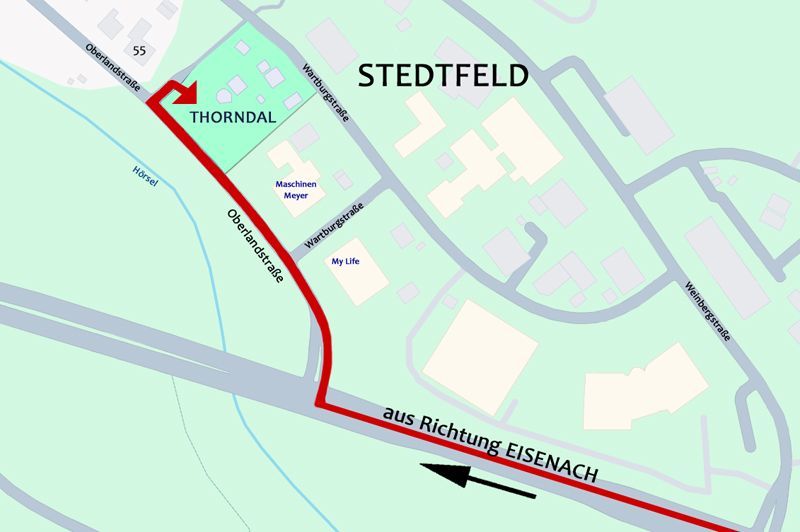 Wenn ihr von Eisenach kommend nach rechts Richtung Stedtfeld abbiegt, seid ihr in der Oberlandstraße.