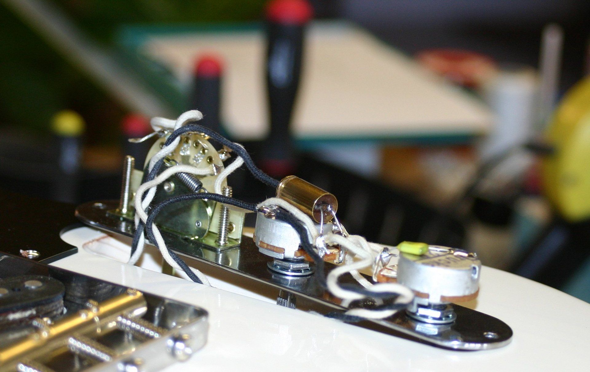 Die Thorndal AV-Schaltung kann jederzeit auch nachträglich in eine Gitarre eingebaut werden und ist im Online-Shop erhältlich.