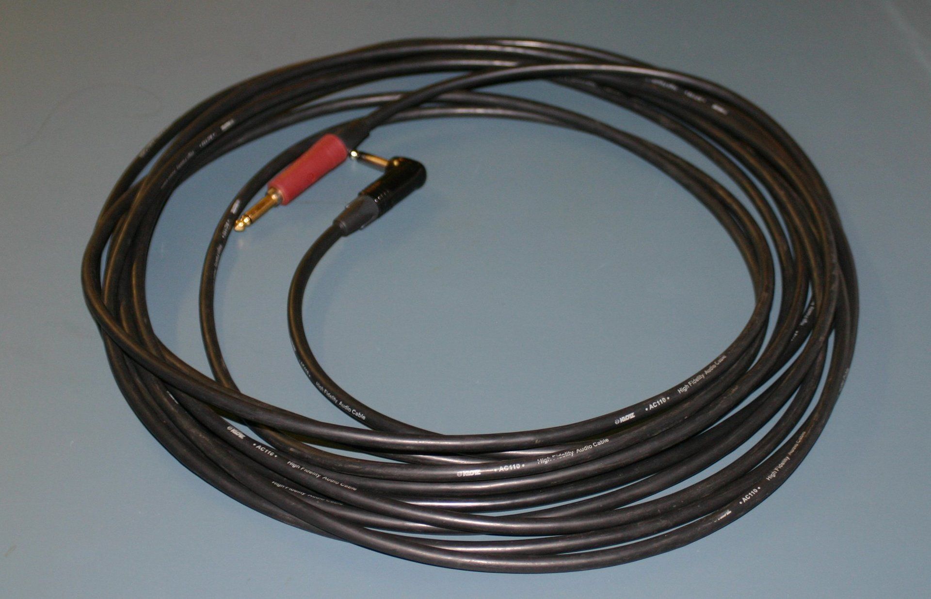 Neutrik - trittfest, beste Zugentlastung, unkaputtbar, highest quality; roter Schaltstecker auf der Instrumentenseite; schwarzer Standardstecker auf der Ampseite