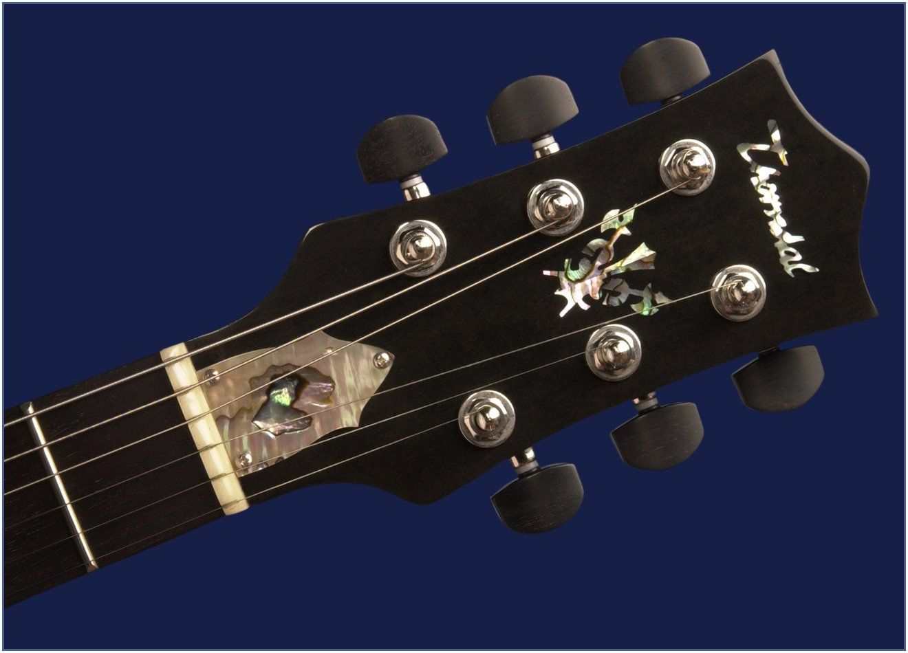 Bevorzugt bauen wir diesen Gitarrentyp mit einem Korpus aus AngelPine - des Gewichts und des Klanges wegen. Deckenaufleimer nach Wahl, Riegelahorn, Wölkchenahorn, Maserhölzer oder Spalted Tops.